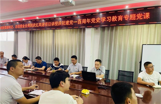 6月6日至6月27日,公司領導班子成員分別前往各項目進行黨史學習教育專題宣講。各項目支部書記也先后講授了慶祝建黨100周年黨史學習教育專題黨課,并錄制微視頻。